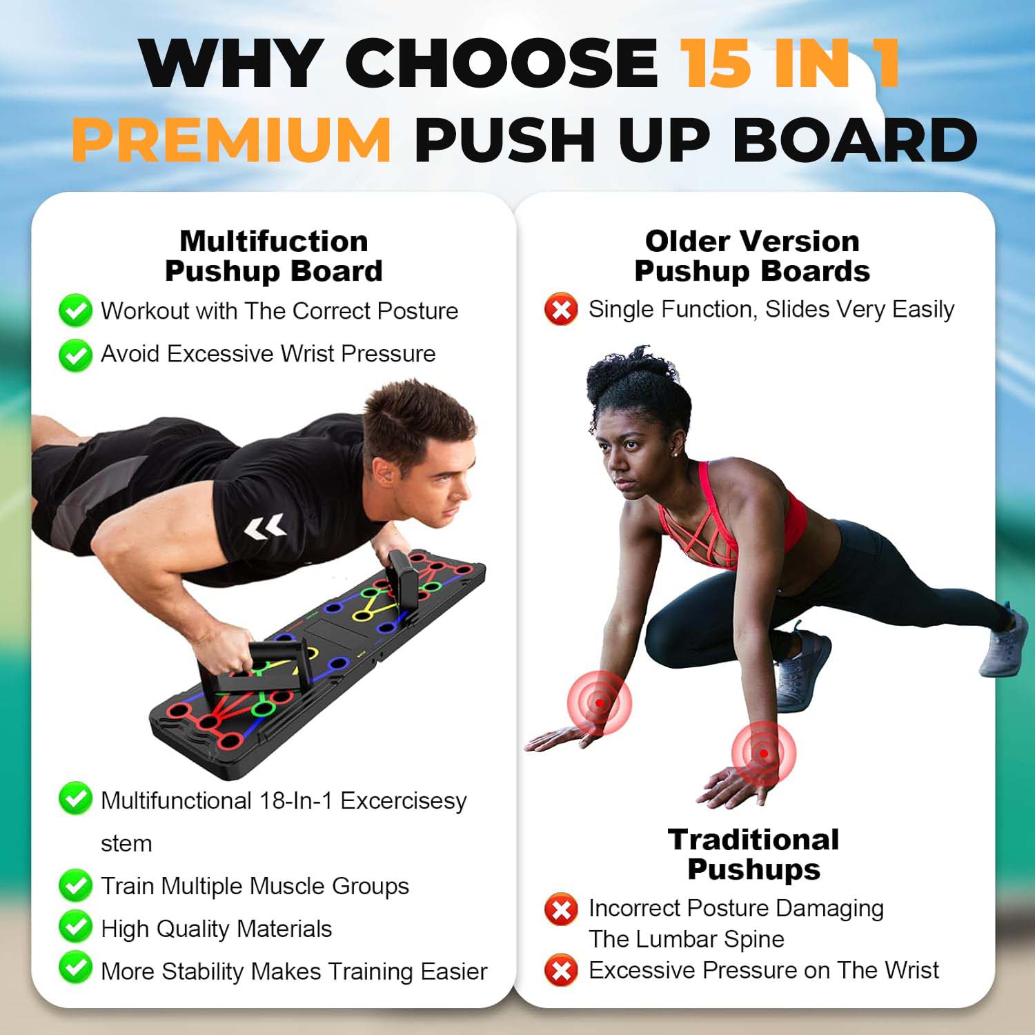 Train smarter with the color-coded push-up board – each position activates specific muscle groups (chest, triceps, shoulders, and back) to maximize gains and maintain perfect form.